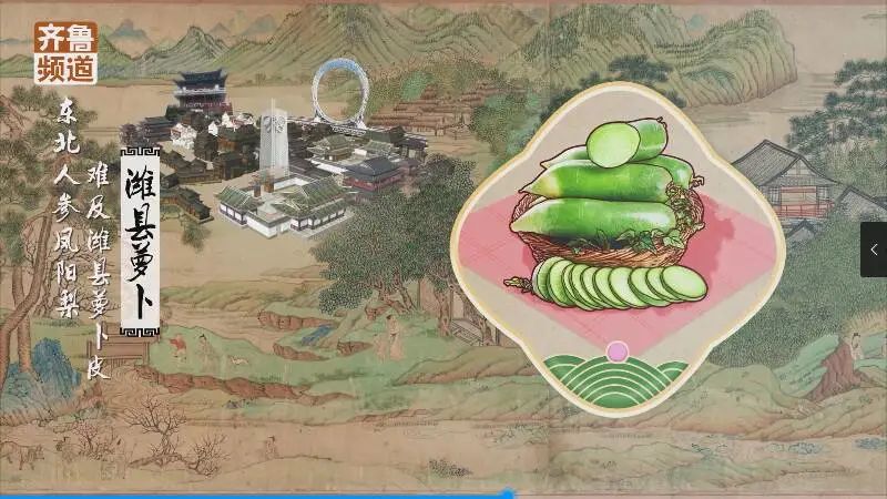 煙臺蘋果、日照綠茶、黃島藍莓、黃河口大閘蟹、乳山牡蠣、章丘大蔥、金鄉大蒜、沾化冬棗、濰縣蘿卜......次第呈現,繪就一幅鄉村振興、物產豐富、知文達禮的新桃花源圖。(來源: 齊魯電視臺 作者 王翠)