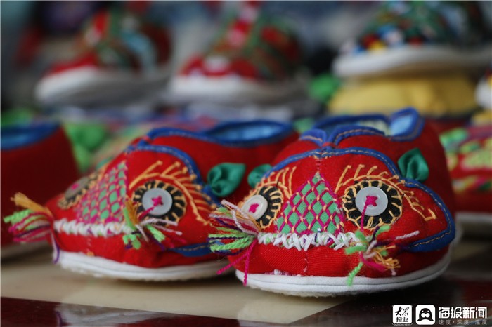 繡虎臉、扎虎須、納鞋底......一針一線手指輕彈,繪就萬千“虎樣兒”新姿色。美好在指尖環繞,穿針引線,一絲一縷化作錦繡之歌,隨著一道道細致的工序,非遺文化虎頭鞋在廣饒縣李鵲鎮七旬老太焦景蘭的雙手中孕育而出,惟妙惟肖,形象栩栩如生。