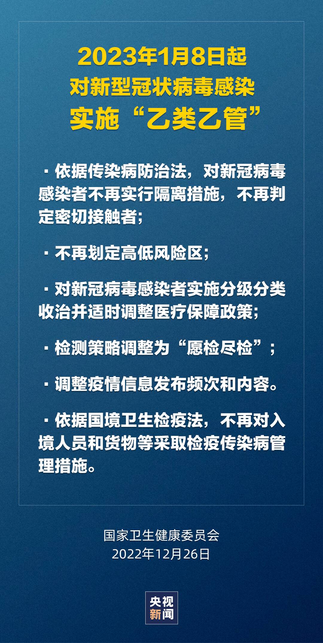 齊魯網(wǎng)·閃電新聞12月27日訊12月26日,國家衛(wèi)生健康委員會(huì)辦公廳印發(fā)《關(guān)于對新型冠狀病毒感染實(shí)施“乙類乙管”的總體方案》,將于2023年1月8日將新型冠狀病毒感染從“乙類甲管”調(diào)整為“乙類乙管”。這是自2020年1月20日我國開始實(shí)施嚴(yán)格的傳染病甲類防控措施后,疫情防控政策的又一次重大調(diào)整。
