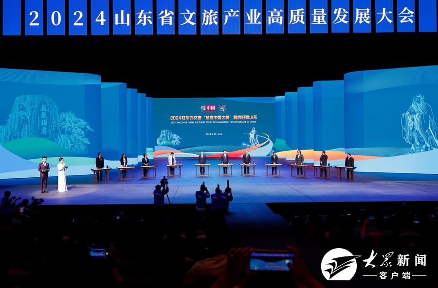 開幕式上,2024駐華外交官“發(fā)現(xiàn)中國之美”山東首發(fā)活動(dòng)啟動(dòng),“泰山娟姐”等網(wǎng)絡(luò)達(dá)人分享“我眼中的山東”,“好客山東·見識(shí)齊魯”研學(xué)旅游品牌發(fā)布。山東省文化和旅游高質(zhì)量發(fā)展戰(zhàn)略合作簽約儀式舉行,18個(gè)重點(diǎn)文旅項(xiàng)目簽約。與會(huì)領(lǐng)導(dǎo)和嘉賓觀看了大型室內(nèi)旅游演藝《國秀·瑯琊》。