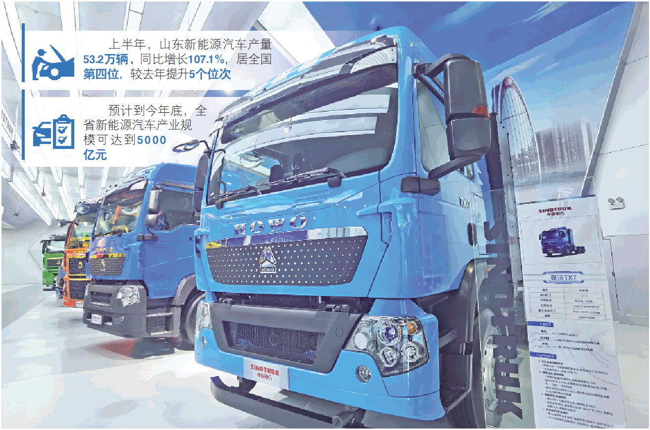 今年上半年,山東新能源汽車產量53.2萬輛、同比增長107.1%,居全國第四位,較去年提升5個位次。各車企的拳頭產品,無不是尖端智造、數字技術與綠色能源的融合體。