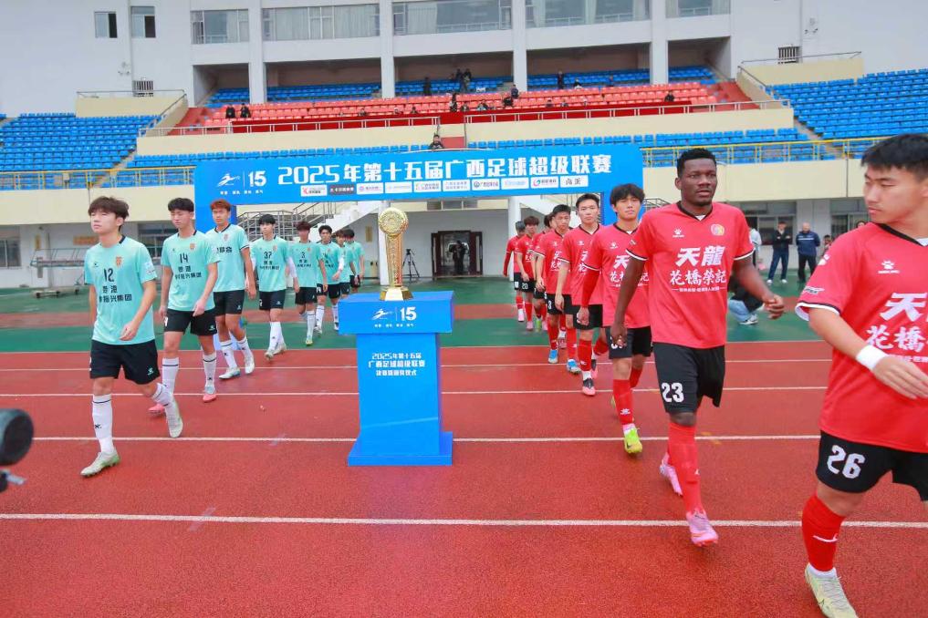 12月7日,桂超決賽現(xiàn)場,雙方運動員入場。