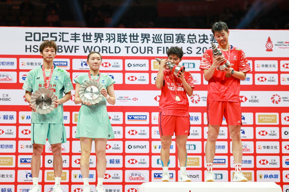 新華社杭州12月21日電(記者丁文嫻、許仕豪、夏亮)21日晚,2025年世界羽聯(lián)世界巡回賽總決賽在杭州奧體中心體育館落幕。中國隊(duì)進(jìn)入四項(xiàng)決賽,最終由馮彥哲/黃東萍奪取混雙金牌。韓國隊(duì)攬得女單、女雙、男雙三冠,法國隊(duì)小波波夫以“黑馬”之姿稱雄男單。