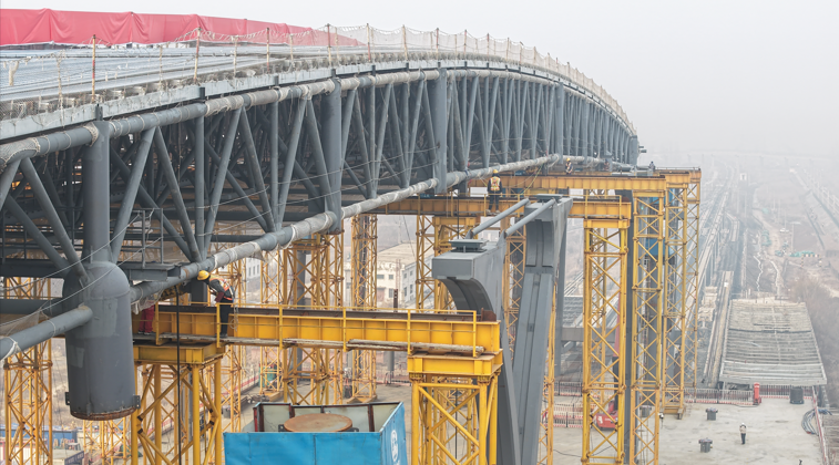 1月4日,津?yàn)H高鐵東營(yíng)南站建設(shè)現(xiàn)場(chǎng)傳來捷報(bào)。歷經(jīng)約2小時(shí)的精穩(wěn)頂推,最后一塊重達(dá)1400噸、跨度195米的巨型鋼屋蓋單元,如同展開的“鋼鐵翅膀”,穩(wěn)穩(wěn)滑移到位,成功跨越下方繁忙的德大鐵路。這標(biāo)志著站房主體結(jié)構(gòu)跨越運(yùn)營(yíng)鐵路線的最大難關(guān)被攻克,項(xiàng)目建設(shè)取得決定性進(jìn)展。