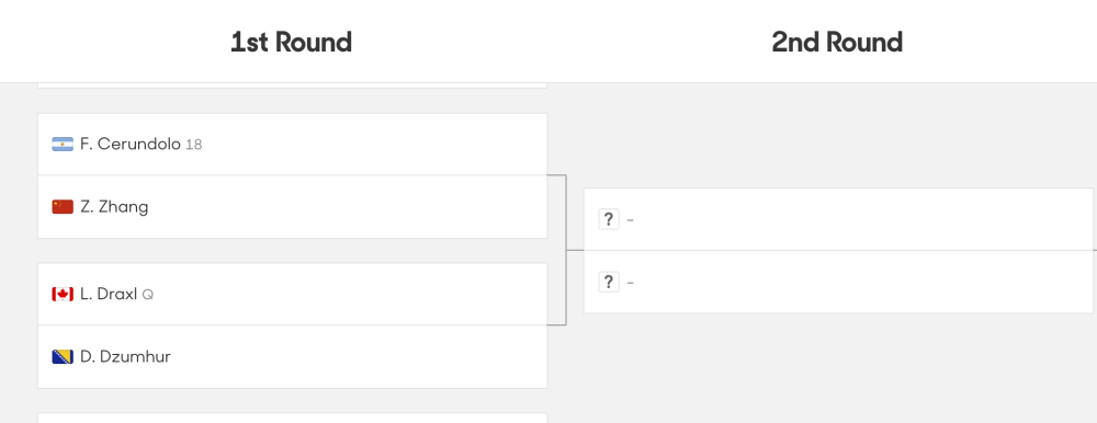 張之臻將在男單正賽首輪對陣18號種子、阿根廷選手塞倫多洛。布云朝克特將迎戰21號種子、加拿大選手沙波瓦洛夫。