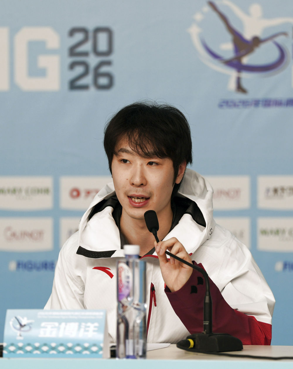 1月15日,中國花樣滑冰運動員金博洋在發布會上發言。新華社記者 謝晗 攝
