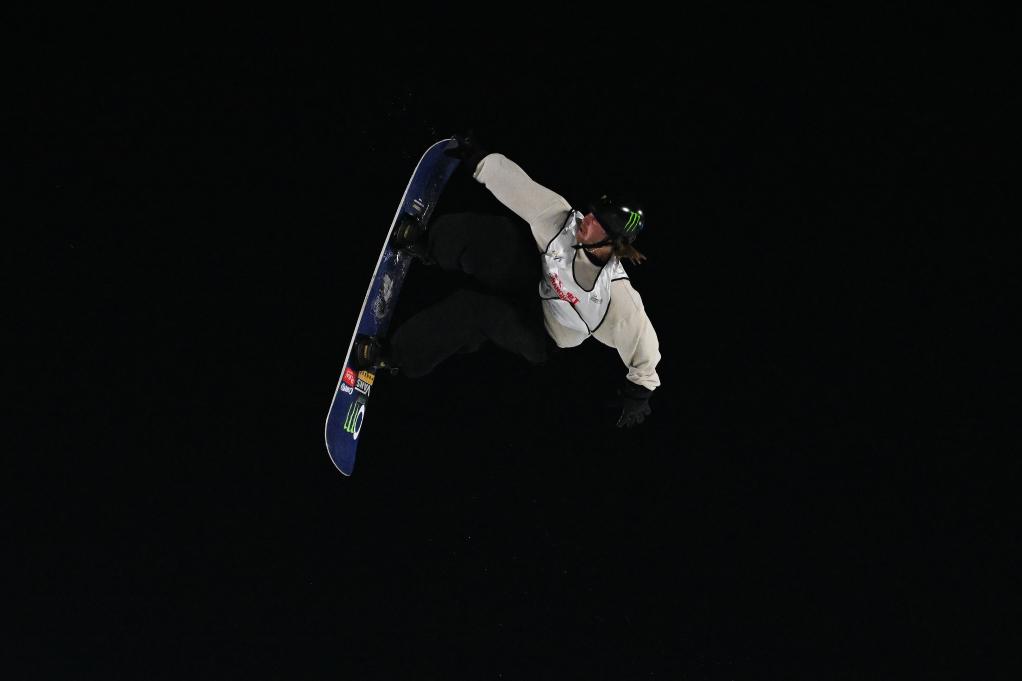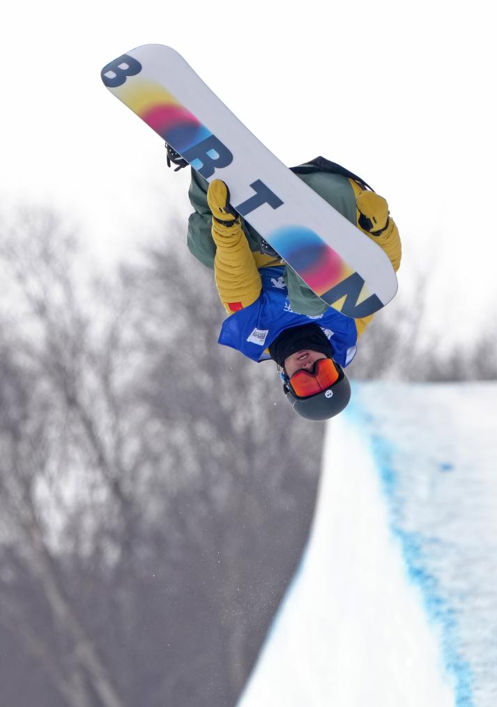 2025年12月10日,王梓陽在國際雪聯單板滑雪U型場地技巧世界杯男子組資格賽中。新華社記者 王鵬 攝