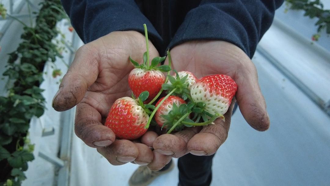 兩個多小時后,園區所有大棚的棉被全部升頂。一旁的連棟溫室里,奶油草莓的香氣隱隱浮動,魚菜共生系統無聲運轉——鱘魚在循環管道中擺尾,排泄物經微生物分解,化作黃葉甜菜和冰草最愛的天然有機肥。