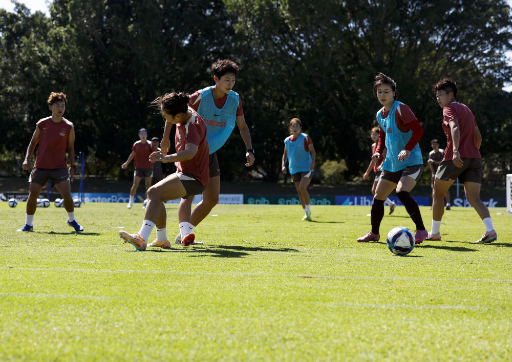 上午的燦爛陽光斜斜地灑在草坪上,映襯著碧藍的天空。中國女足姑娘們正在場上進行戰術演練,澳大利亞籍主教練米利西奇的指揮聲,與隊員們的呼喊聲此起彼伏,綠茵場上充滿了拼搏與專注的氣息。