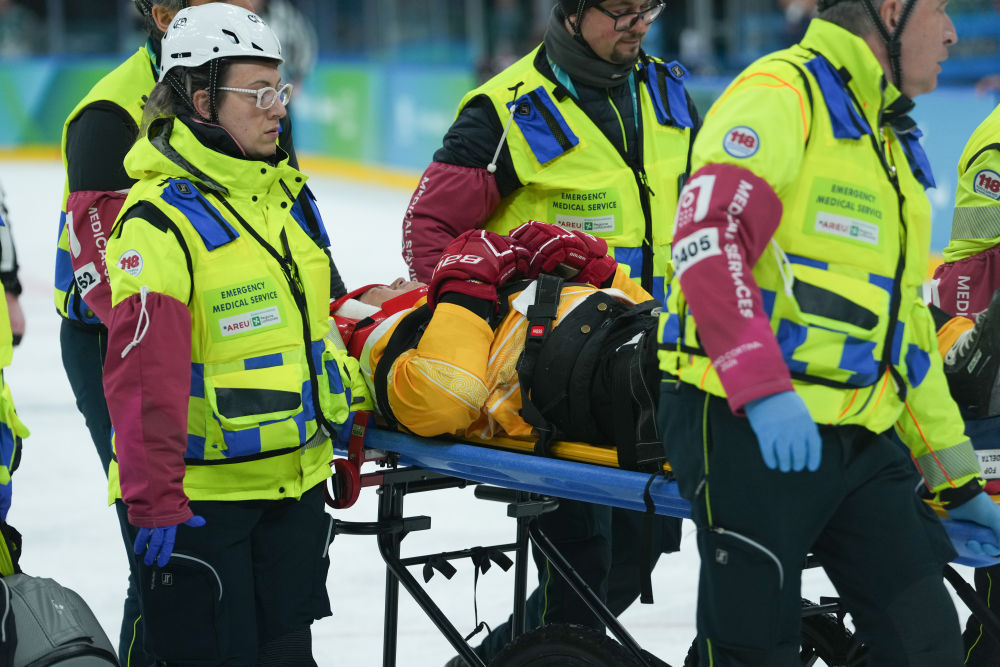 3月13日,邱殿棚在對陣加拿大隊的比賽中受傷離場。新華社記者 李京 攝