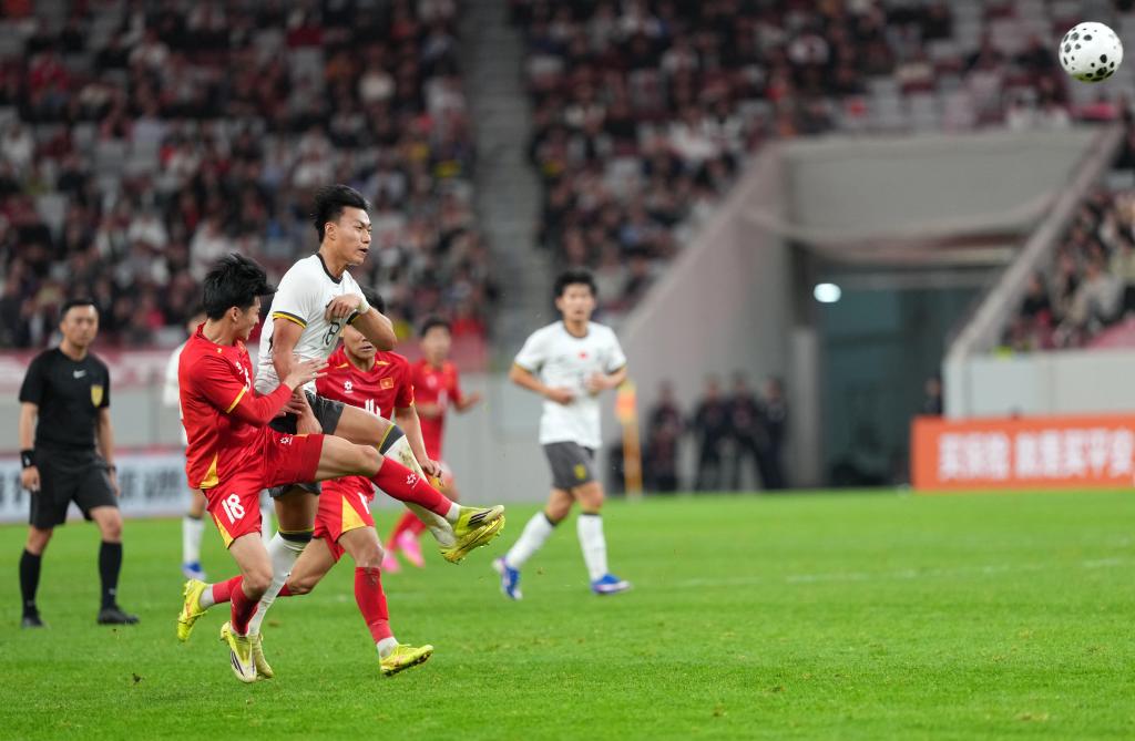 第80分鐘,中國隊場上隊長木塔力甫·依明卡日在越南隊禁區(qū)弧頂位置嘗試遠射,皮球稍稍偏出對方球門。終場前,李新翔錯過為中國隊擴大比分的機會。