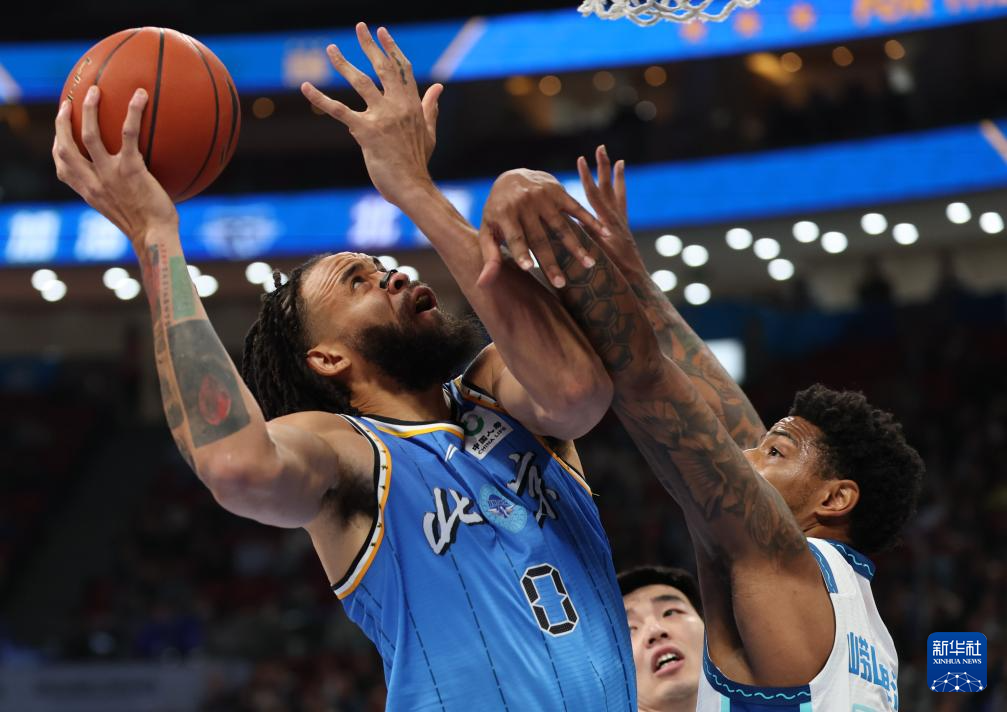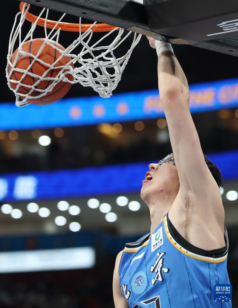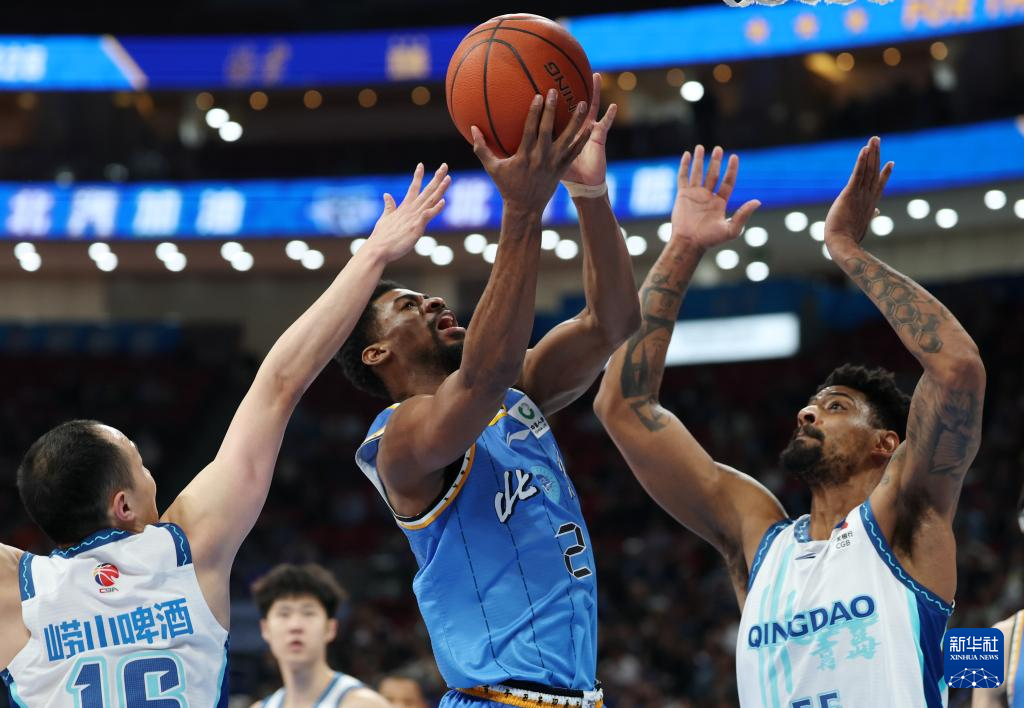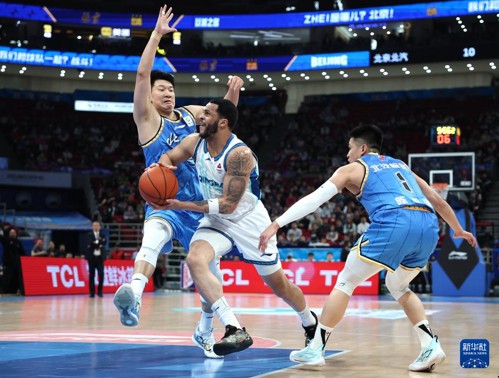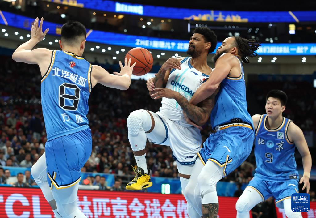 4月14日,在2025-2026賽季中國男子籃球職業聯賽(CBA)常規賽第39輪比賽中,北京北汽隊主場87比70戰勝青島嶗山啤酒隊。