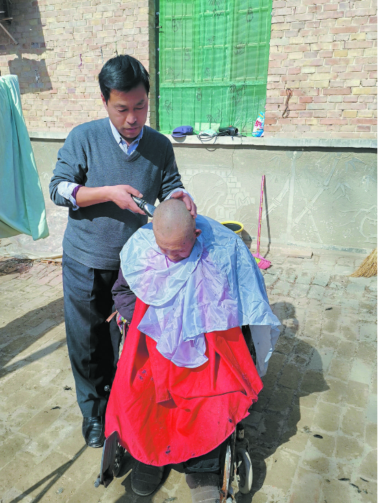 父親年邁有病行動不便,理發成了難題,徐德成就在網上買來理發工具跟著書本學理發,看他理起發來還真有模有樣,誠然是一個“理發師”。徐德成說:“只要父母喜歡、父母需要,咱干啥都是應該的!”