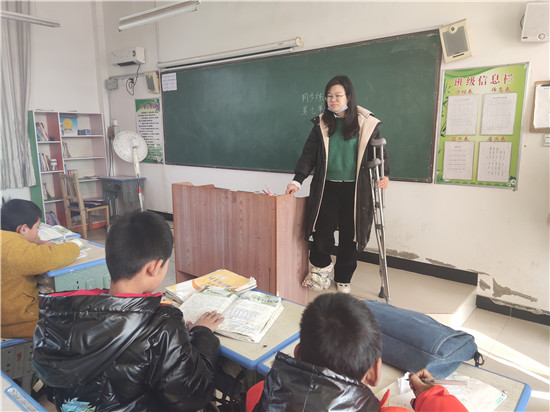 “同學們,請跟隨老師把課文讀一遍……”近日,在單縣黃崗鎮土山小學三年級教室里,帶傷上課的張瑩一絲不茍地講著課,學生們聽得津津有味。“張老師受傷近一個月了,每天都堅持為學生上課,這種精神感動了我們全校師生!”校長王忠勇說。