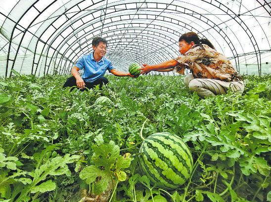 口袋公園,一座座由石碾、石磙組成的建筑高低錯落;采摘基地,一個個西瓜在瓜藤和綠葉間若隱若現(xiàn);花海之中,一朵朵清香撲鼻的金銀花掛滿枝頭……仲夏時節(jié),走進(jìn)曹縣青崗集鎮(zhèn)江海村,青磚黛瓦馬頭墻、新村舊落各美其美,村里的主干道直通水清木秀間。古老的村莊經(jīng)過再設(shè)計(jì),變成讓城里人心向往之的“綠富美”。