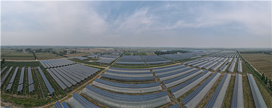 據悉,該村2017年成立鼎浩新能源公司,流轉本村及周邊村莊土地1200畝,由青島昌盛新能源有限公司投資6.8億元合作建設了30兆瓦太陽能光伏項目。目前,該項目已完成并網發電,年發電量達4000萬度,年產值3600萬元。同時,將光伏發電與“種養”結合,發展特色種植和養殖業,在光伏大棚下利用養殖場糞便處理的有機肥,種植皇后菜、韭菜、地瓜、黃金梨,養殖牛蛙,形成綠色循環產業鏈條。去年底,全鎮貧困戶依靠光伏收益分紅376萬元,每戶3000元,“農光互補”帶動了150名村民就業。