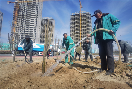 近日,市區八一東路上,市開發區園林工作人員正在補栽綠植,為城市添新綠。據了解,因長江路快速通道工程(西安路至上海路)施工需要,該路段部分綠植已被保護性移栽。其中,八一路、桂陵路至武漢路綠化用地的空地上,移栽了百日紅、紫葉李、海棠樹、石榴、木瓜等樹種近980株,獲得市民一致好評。記者 孫 濤