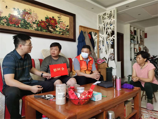 “感謝黨和政府的關心,謝謝!”近日,市經濟開發區退役軍人服務辦公室負責人向突遭家庭變故的現役軍人劉鶴送去了2000元慰問金,并表示,盡可能幫助劉鶴解決家庭現實困難,讓其安心服役。據了解,市經濟開發區退役軍人服務辦公室接到市退役軍人事務局轉送的《關于協調辦理劉鶴同志慰問救濟函》后,高度重視并第一時間聯系劉鶴詳細了解情況,表達軍地的組織關心。記者 孫濤 攝