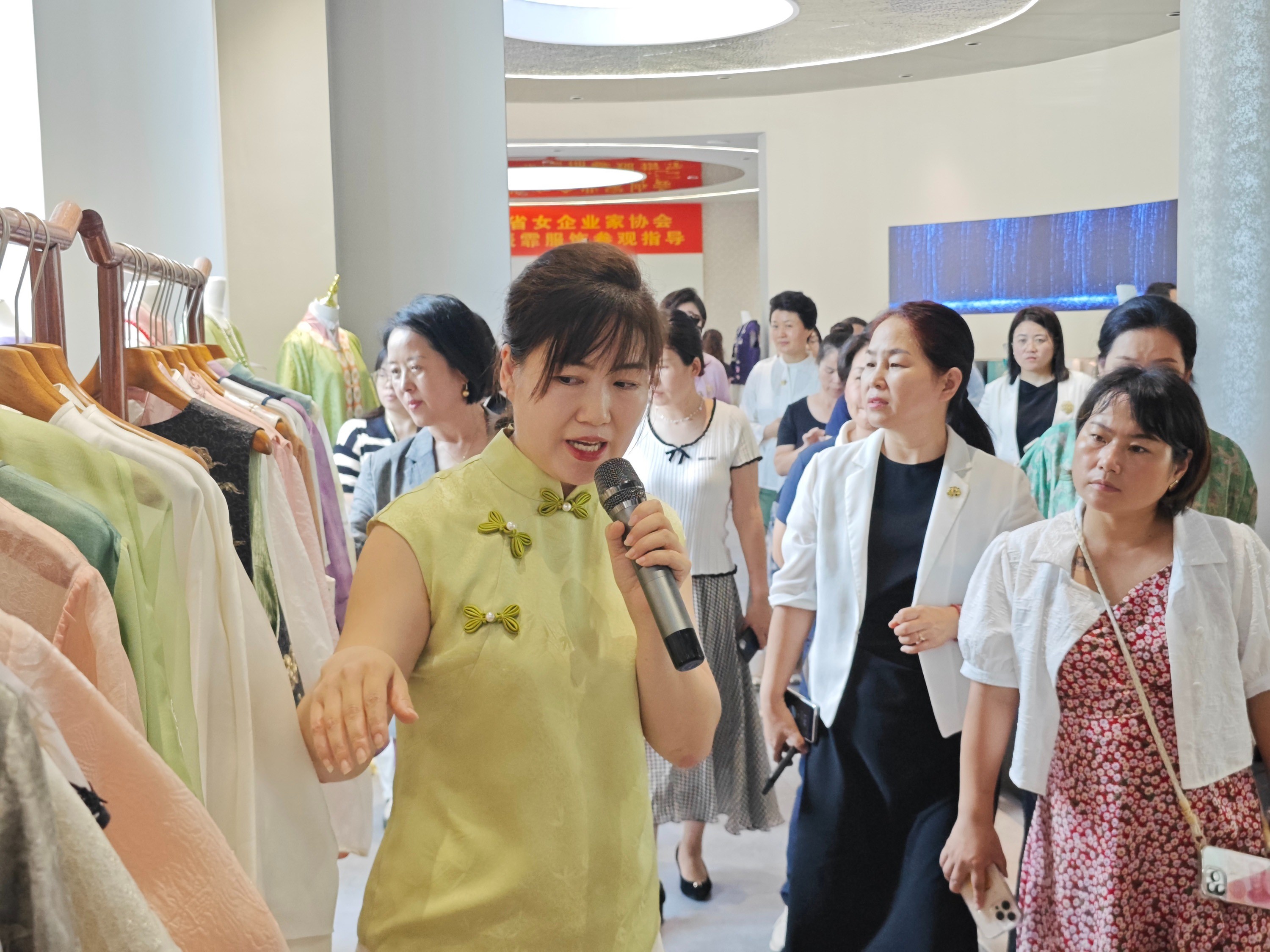 8月7日,在曹縣有愛共創(chuàng)漢服直播基地,來自省、市女企業(yè)家協(xié)會的企業(yè)代表正在聽工作人員講解曹縣漢服產(chǎn)業(yè)發(fā)展情況。據(jù)了解,本次女企業(yè)家交流活動不僅拓寬了女企業(yè)家的發(fā)展視野,為企業(yè)注入新的發(fā)展動能,更為外地企業(yè)架起長效溝通橋梁,推動建立了常態(tài)化的學習交流與合作互動機制。下一步,省女企業(yè)家協(xié)會將持續(xù)聚焦數(shù)字經(jīng)濟發(fā)展趨勢,緊扣“數(shù)字強省”戰(zhàn)略部署,不斷豐富培訓形式、拓展賦能領(lǐng)域,組織更多針對性強、實效性高的交流活動,推動全省女企業(yè)家群體在傳統(tǒng)產(chǎn)業(yè)數(shù)字化轉(zhuǎn)型中主動作為、勇挑重擔,為全省經(jīng)濟高質(zhì)量發(fā)展貢獻“她力量”。
