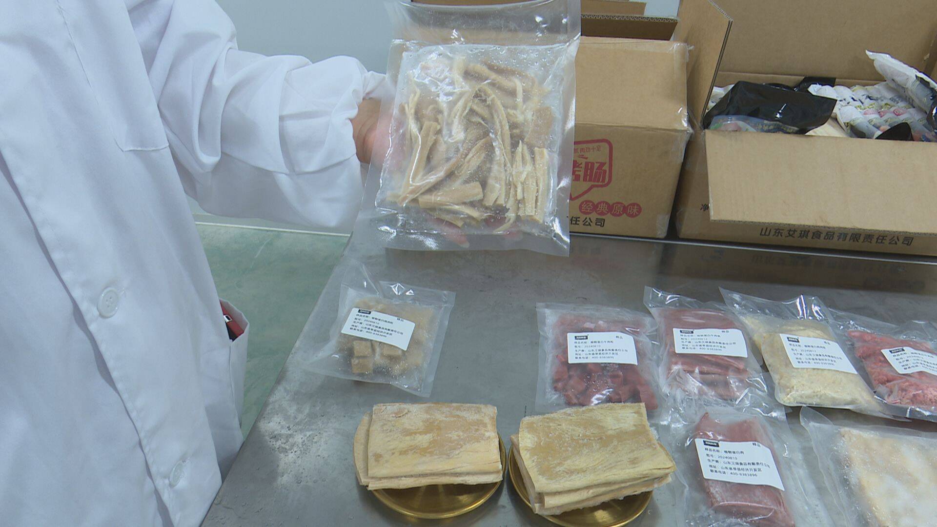 山東艾琪食品有限責任公司負責人孔德鳳:我們公司不僅是植物蛋白肉行業(yè)標準的起草單位,還持有多項發(fā)明專利,涵蓋植物蛋白肉的生產(chǎn)工藝、調(diào)味料配方及食品安全技術。研發(fā)中心配備先進的檢測設備,從原料篩選到成品出廠,每一個環(huán)節(jié)都嚴格把控,確保產(chǎn)品符合國際食品安全標準。