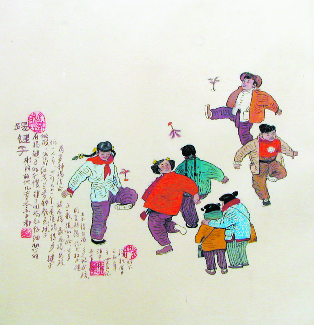 過去的農村生活,冬季漫長而寒冷,沒有暖氣空調,沒有電動玩具,孩子們就用踢毽子健身取暖,舒展筋骨。課堂下、街道邊、球場上,踢毽子成為參與性極廣的一種群體健身項目。
