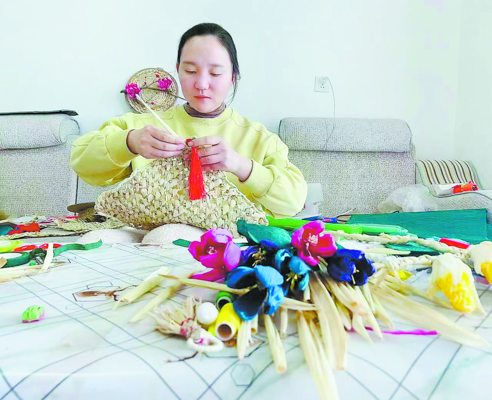 玉米皮在農(nóng)村很是常見(jiàn),過(guò)去都是當(dāng)柴生火做飯。“巧手姑娘”張雨浠自從學(xué)會(huì)了編織,她家的玉米皮也由廢物變身為寶貝,成了庭院經(jīng)濟(jì)增收項(xiàng)目。作為這一傳統(tǒng)文化的手造者、傳承人,張雨浠在隨心所欲的編織勞動(dòng)中,獲得的是幸福的向往。“點(diǎn)‘皮’成金,變廢為寶,我編織的是美好生活!”張雨浠高興地說(shuō)。