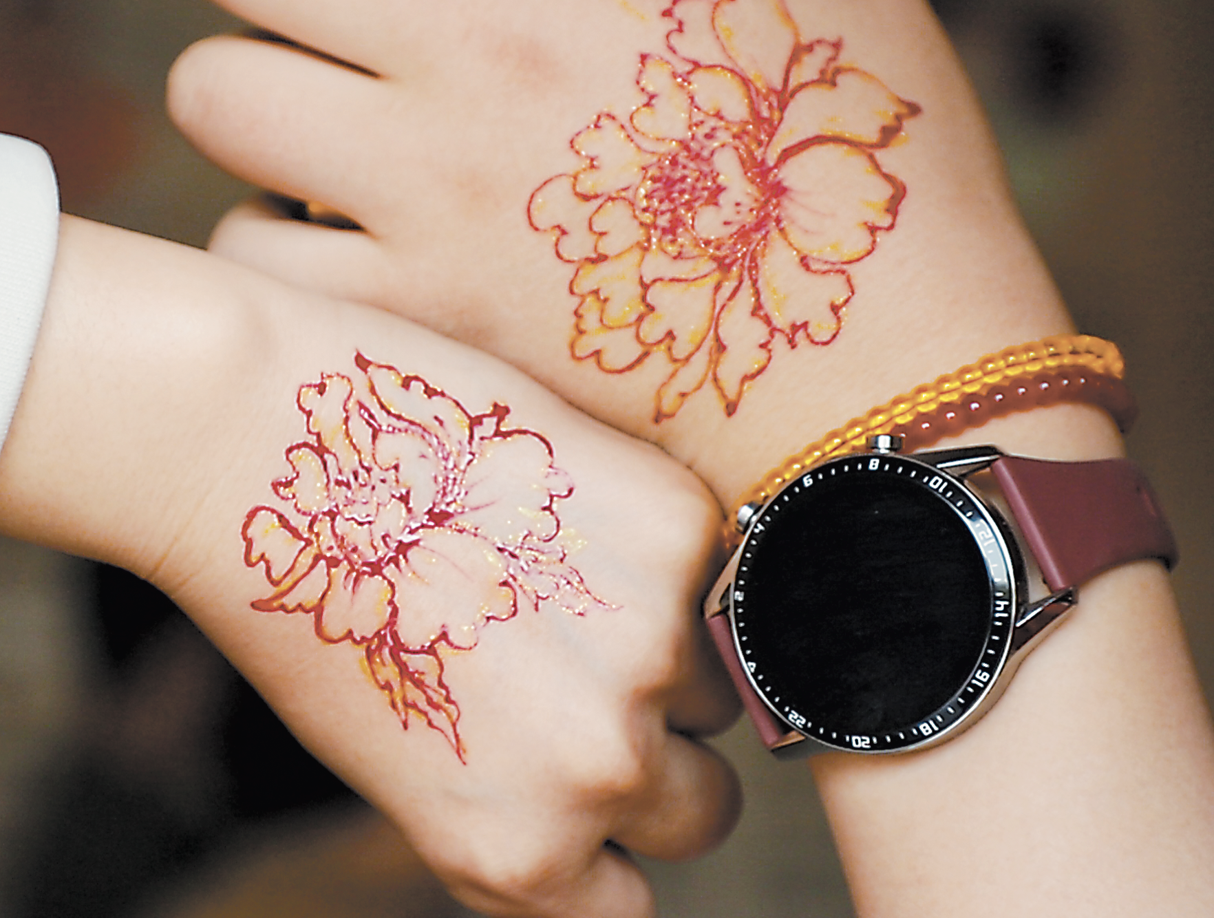 沒過多久,一朵栩栩如生的牡丹便在游客手面上悄然“盛開”。游客們驚嘆不已,紛紛舉起手,欣賞這獨特的藝術作品。