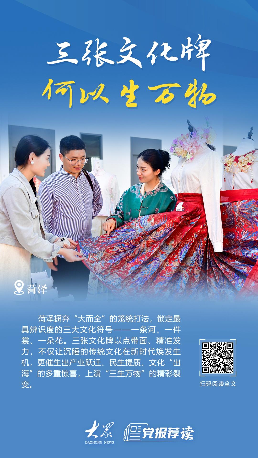 “一生二,二生三,三生萬(wàn)物。”在菏澤,“一條河、一件裳、一朵花”的“文化+”傳奇,還在不斷書寫。
