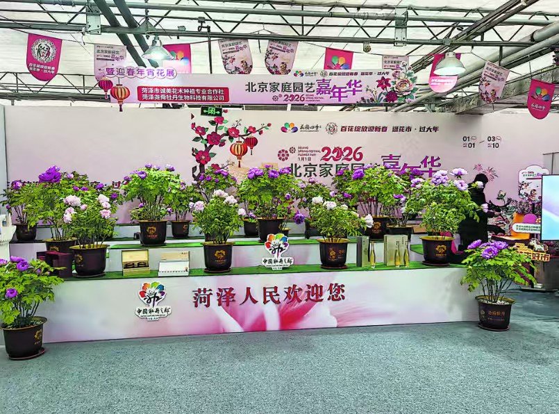 日前,2026北京家庭園藝嘉年華暨迎春年宵花展在北京花卉交易中心開幕。菏澤作為全國4個特邀城市之一,攜牡丹及系列衍生產品精彩亮相,以花為媒,向首都人民展示菏澤牡丹的獨特魅力與產業發展成果,為廣大花卉愛好者送去濃濃春意。