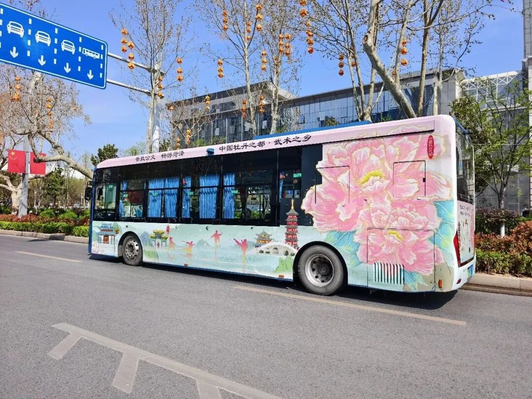 菏澤素有“中國(guó)牡丹之都”的美譽(yù),同時(shí)擁有書(shū)畫(huà)之鄉(xiāng)、武術(shù)之鄉(xiāng)、戲曲之鄉(xiāng)、民間藝術(shù)之鄉(xiāng)的“一都四鄉(xiāng)”文化名片。此次牡丹文旅主題公交充分挖掘城市文化內(nèi)涵,以牡丹為核心元素,結(jié)合“一都四鄉(xiāng)”特色,對(duì)車(chē)輛外觀進(jìn)行主題化設(shè)計(jì)。每輛公交車(chē)的車(chē)身均以不同主題呈現(xiàn),或展現(xiàn)國(guó)色天香的牡丹盛景,或融入傳統(tǒng)書(shū)畫(huà)藝術(shù)、武術(shù)英姿、戲曲風(fēng)采及民間手工藝元素,形成“一車(chē)一主題、一車(chē)一風(fēng)景”的獨(dú)特風(fēng)貌。