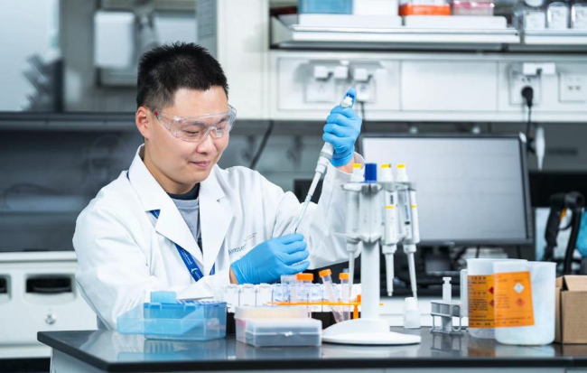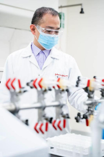 ??強生旗下制藥業務工作人員正在做實驗