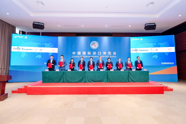 拜耳中國公共與政府事務及可持續發展副總裁高勇博士(左五)代表拜耳提前簽約第七屆進博會