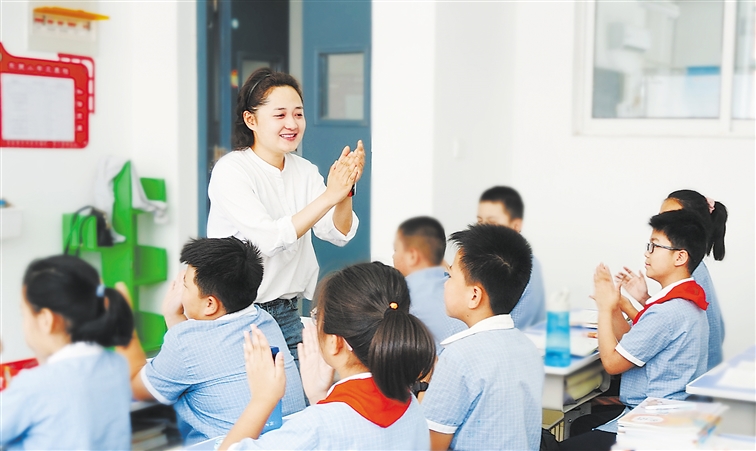 這是鄆城縣東關小學教師魏琳的數學課堂,身兼數學教師、班主任、數學教研組長、教務副主任、校黨支部組織委員等職務,她依然活力滿滿,并將這種狀態傳遞給學生。“我希望孩子們學習不要太累,在我的課堂上,盡力讓他們開心地學知識。”