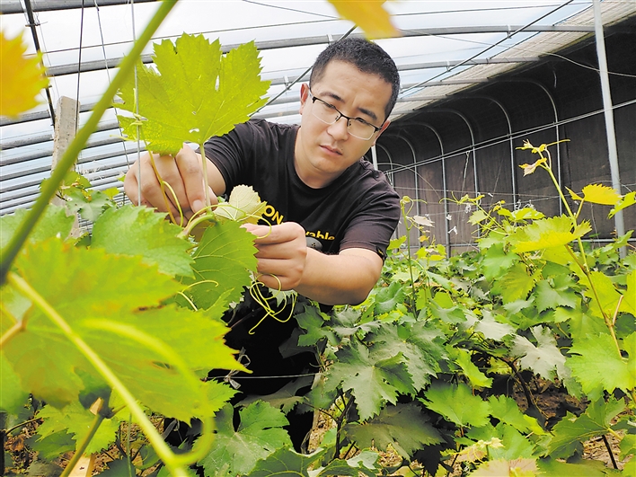 在小王莊田園綜合體葡萄大棚內,村民李鳳英邊修剪枯枝邊說道:“離家近,干活也不累,一個月還能拿2000多塊錢呢!”在紫紅色葡萄的映襯下,李鳳英滿是笑容的臉顯得格外紅潤。