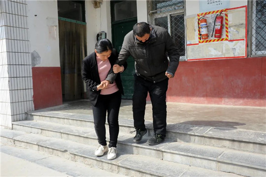 “同學們,下課!”隨著一陣放學鈴聲響起,王艷英結束了上午的三節物理課,和學生們互道再見后,轉身奔向了食堂。拿著打好的飯菜,她未作任何停留,一溜兒小跑又來到了一間空教室,那里有她牽掛的丈夫正坐著輪椅等她歸來。這一幕時常在鄆城縣雙橋鎮初級中學的校園里上演。