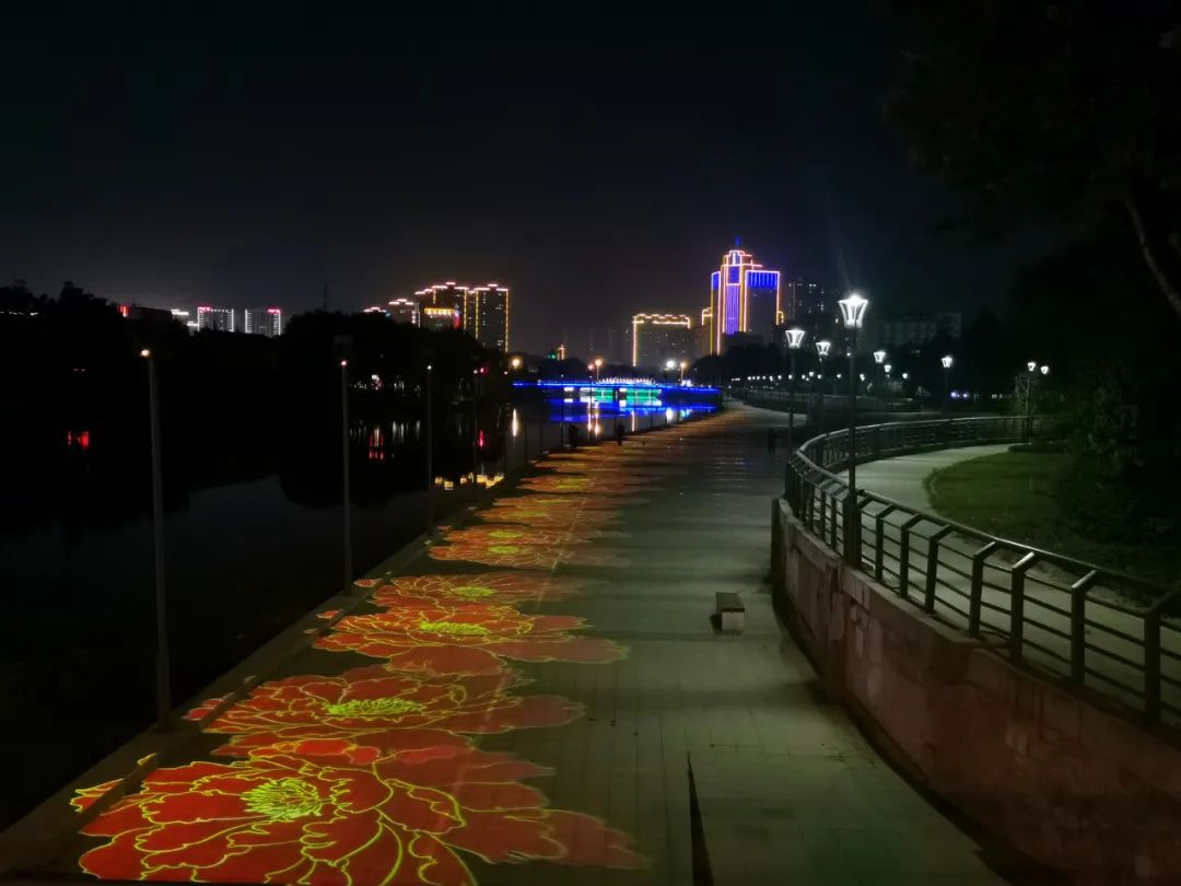 夜幕下,牡丹花“灑滿”趙王河畔,美翻了!菏澤人,快來“走花路”!