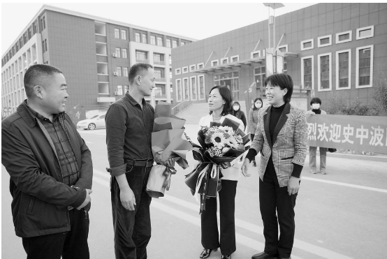 讓他意外又驚喜的是,自己一直牽掛著的學生正列隊在校門口迎候,為他鼓掌、喝彩;成武縣教育局局長馬華武、紅十字會黨委書記王霞、衛健局工會主席方禮艷等也手捧鮮花,與他握手致意。那一刻,盡管他已身心俱疲,內心卻無比溫暖。