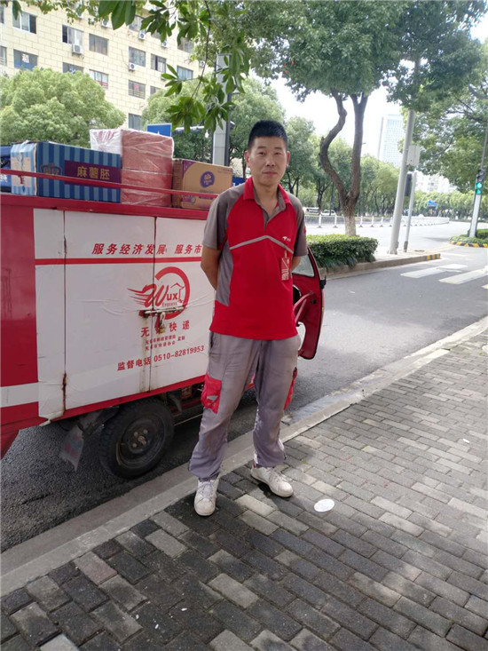 1983年出生的蘇同賀,來自鄄城縣舊城鎮,目前是無錫京東沁園營業部的一名快遞員。