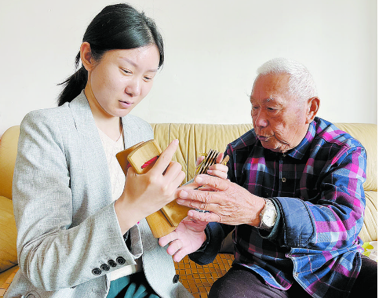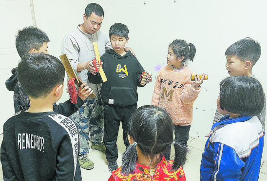 之后,陳龍接過田超贈予的竹板,跟隨老師演出。他邊觀看邊模仿,遇到“坎兒”就請教,師徒樂教樂學(xué),共同進步。