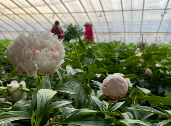 盛世芍藥園負責人趙文雙介紹,今年在技術革新方面預計投資800萬,建立4000m2聯(lián)棟溫室,用于芍藥鮮切花終年供應,讓芍藥從“花開花落二十日”到“花隨人意應時開”,在菏澤,牡丹和芍藥不僅是自然之花,更已成為“科技之花”。
