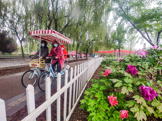 4月4日,曹州牡丹園內(nèi)的早期牡丹競相開放,沐浴了春雨的牡丹晶瑩剔透更顯嬌艷。雖然氣溫微涼,但仍擋不住游客前來觀賞雨中牡丹的熱情,不少市民和攝影愛好者專程冒雨前來賞花、拍照留念。據(jù)工作人員介紹,早期牡丹已進(jìn)入盛花期,未來1至3周將進(jìn)入牡丹最佳觀賞期。