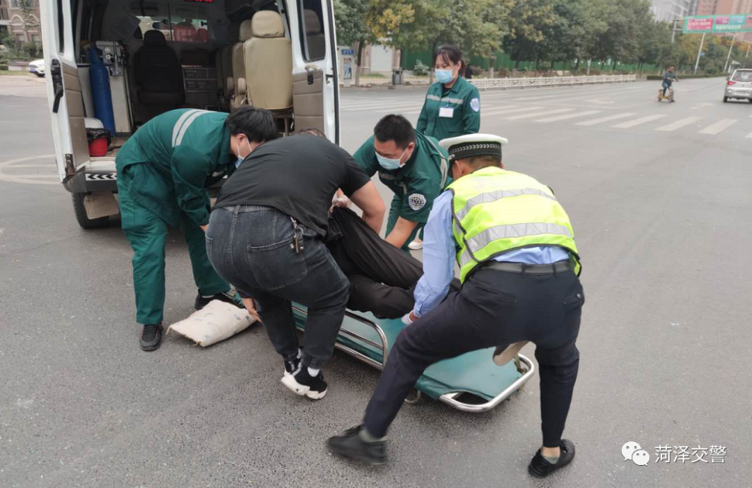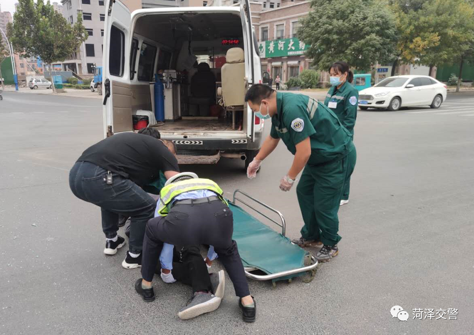 10月3日,東明縣交警大隊城區中隊早高峰在城區主要路口執勤中,遇一起突發性交通事故,立刻撥打了120急救電話,救護車到達現場后發現傷者是一名老人,腰部受傷無法動彈,正在路口執勤的城區中隊民警高建華、霍耀華聞訊趕來,在曙光、向陽路口協助醫護人員移動傷員。并小心翼翼將老人抬上救護車,緊急送往醫院。