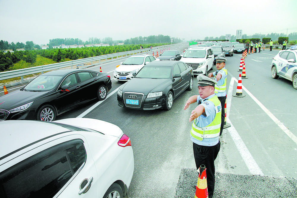 國慶假期車流量高峰時段,菏澤高速交警根據實際情況,采取適時分流、間隔放行的措施,避免假期期間轄區高速公路車輛長時間擁堵。據悉,假期期間高速交警部門把警力壓向路面,加強疏堵保暢,科學研判分析重點路段流量特點及施工區域內不同路段通行現狀,有針對性地部署勤務,最大限度保障通行。啟用備用巡邏通道,全線設置流動觀察哨,發現擁堵事故后快速、靈活到達現場,避免擁堵在主線。通過科技管控與路面查處并舉嚴查交通違法,消除安全隱患,全面確保國慶假期高速公路總體平穩。