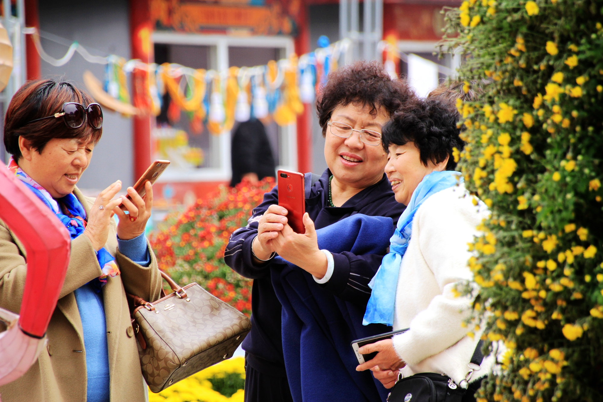 牡丹園內,男女老幼賞花游玩,享受假日美好時光,洋溢著濃濃的節日喜慶氣氛。