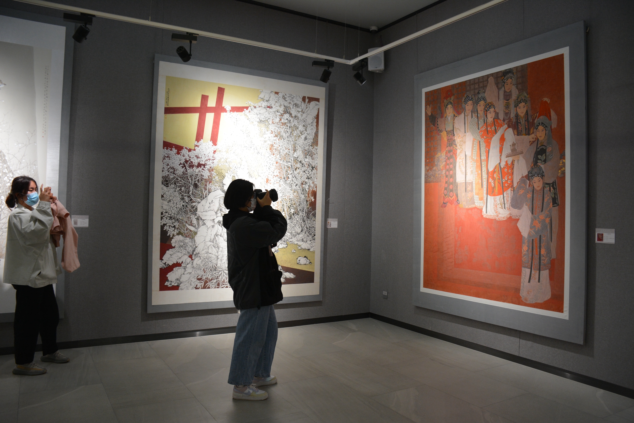 開幕式后,與會領導共同參觀了書畫展。據悉,本次展覽受到了全國美術工作者的關注和參與,共征集作品6000余件,最終入選174件。