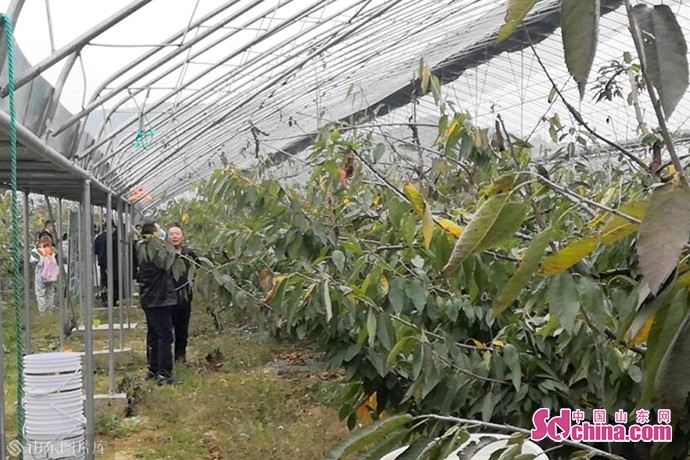 村里的櫻桃大棚位于村委會以南,2個2.1畝的櫻桃大棚,每個棚長99米,寬14米,高5.7米,棚內(nèi)有自動卷簾機、滴灌、溫控機、配電設(shè)備、棉被和看護房等設(shè)備,兩個棚合計6年以上樹齡德櫻桃樹約386棵。2020年8月對2個櫻桃大棚實行公開招投標,每年承包費用6.12萬元。村主任王華濤介紹說,櫻桃大棚除了可以為村集體每年帶來收益的同時,還為本村有勞動能力的貧困人口提供了就業(yè)崗位,“凡是來櫻桃大棚打工的人,每天的工錢都是100多塊錢。”
