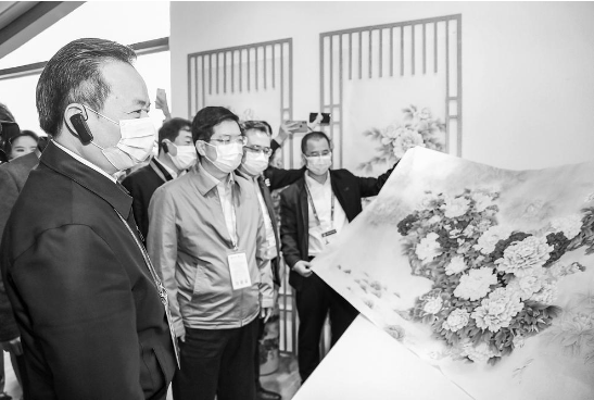 11月5日至10日,第三屆中國國際進口博覽會在上海國家會展中心舉行,巨野工筆牡丹畫在廣大海內外觀眾面前亮相。據了解,這是繼2018年巨幅工筆牡丹畫《花開盛世》亮相上合組織青島峰會,2018年、2019年巨幅工筆牡丹畫《錦繡春光》走進進博會之后,巨野工筆牡丹畫再次在重大國際場合大放異彩。