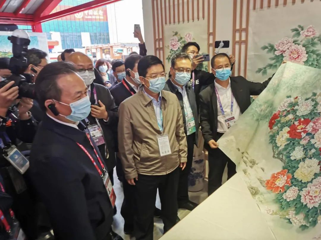 進博會活動期間,陳平陪同省委副書記、省長李干杰先后來到中央廣場山東展臺巨野縣牡丹書畫展區、山東老字號暨非遺文化體驗館鄄城縣魯錦展區進行巡展,聽取企業經營情況介紹,觀看牡丹書畫現場制作過程,詢問鄄城縣魯錦、巨野牡丹書畫發展歷史和目前的經營情況,鼓勵非遺和老字號企業實現“跨界”合作,進一步做大做強。陳平在我市企業山東佳農公司簽約客戶丹麥國際貿易公司展位,詳細了解該公司進出口情況,希望佳農公司借助進博會機遇,積極與外商洽談,進一步開拓國內外市場。