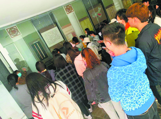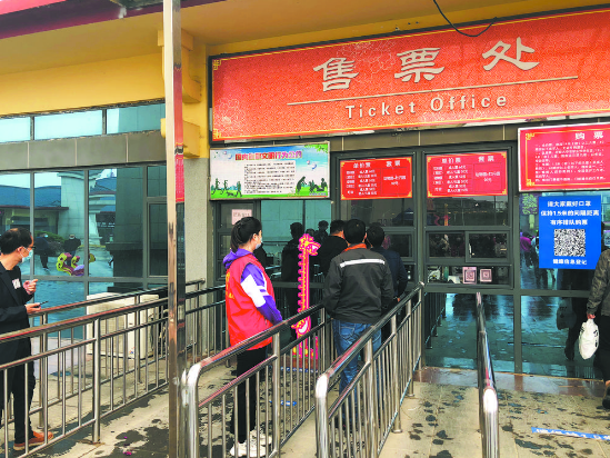 志愿者在售票處維持秩序