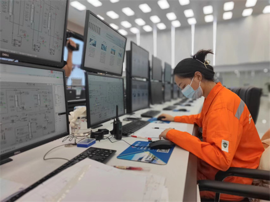 8月8日,東明勁?;?00萬噸/年資源綜合利用項目中控室內,工作人員正通過電腦進行遠程調試作業。目前,項目主體已經進入單機試運,近日中期交工后將進入試車環節。